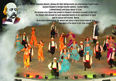 Seen through the eyes of the Sphinx, the mysterious symbol of Egypt who's origins remain shrouded, we will experience an exciting array of tableaux that bring to life not only real personalities but also flights of oriental fantasy.